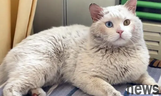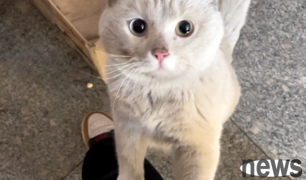 It was a white cat with different eyes. Its whole body was covered in gray, and its gray-headed and gray-faced appearance impressed the young lady deeply.