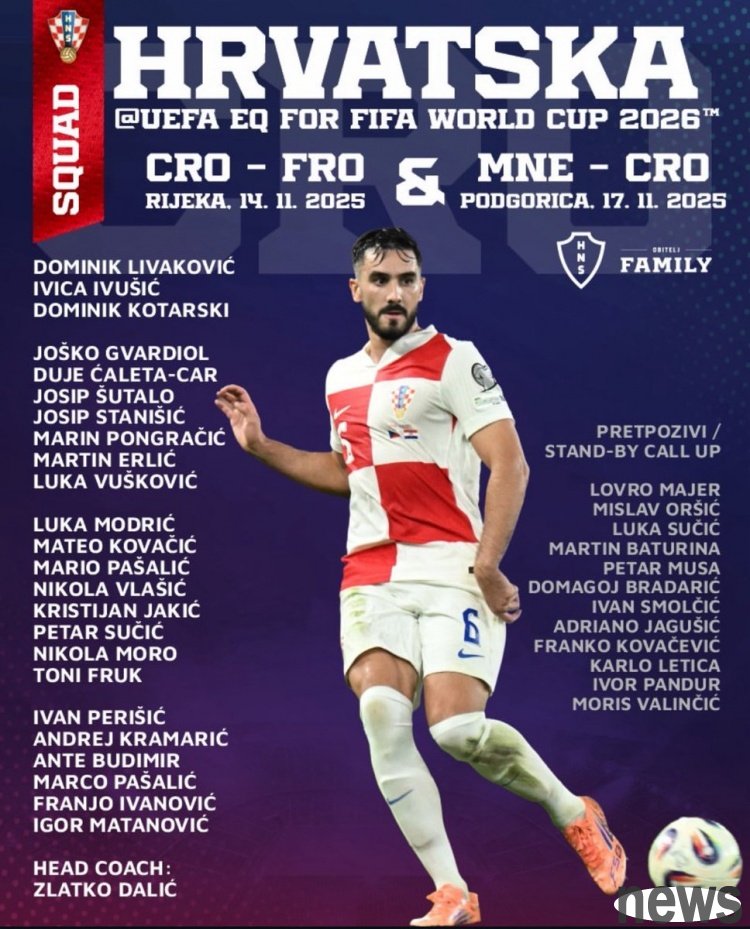 Croatia announced the latest roster. This month, the team will face the Faroe Islands at home and Montenegro away in the World Cup preliminaries.