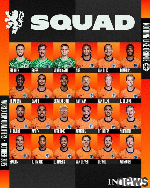 Dutch team list: Van Dijk leads 4 Liverpool players, De Jong and Timber are on the list, without De Rigt
